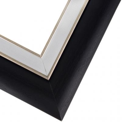Черен профил за рамка с бяло паспарту. Профилът е със сребристи кантове.